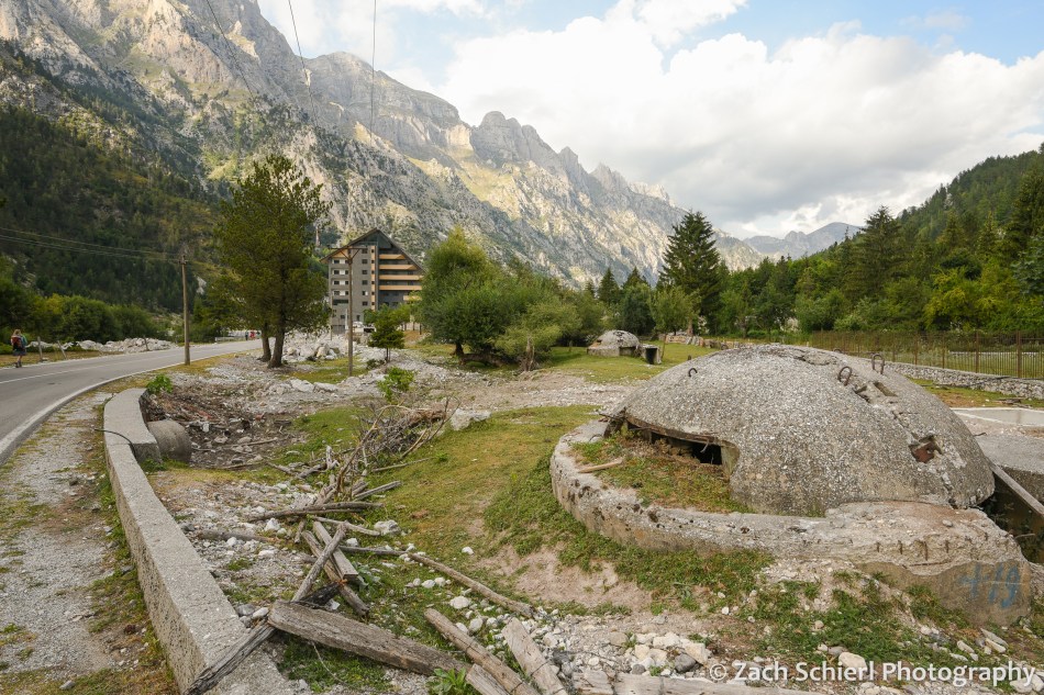 Valbona is not really a town per se, but rather a bunch of homes, farms, and guesthouses strung out along several miles of the Valbona River Valley. The road into the valley dead ended a few miles up valley from our guesthouse, turning into a hiking trail that we would take to Theth a few days later. Valbona was an incredibly beautiful albeit very perplexing place. We struggled to find a comparison to anywhere we’ve visited before. For starters, we weren’t quite sure where everyone that was on the ferry went, because the valley felt pretty deserted. There were a ton of little guesthouses (some with restaurants) scattered throughout the valley, but no other tourist infrastructure whatsoever: no stores, gas stations…nothing. The entire area is a national park, though if we hadn’t read that in advance, I don’t think we would have known. There is certainly no visitor center, and barely any signage whatsoever. It seemed like half the valley was under construction. There were a lot of half finished buildings (including a monstrosity of a hotel that seemed more out of place than any building I’ve seen in my life), many of which looked like they hadn’t been worked on in quite some time. The roadside and yards were also littered with decomposing, round, concrete bunkers, left over from Albania’s communist days when Enver Hoxha was paranoid about an attack and had several hundred thousand prefabricated bunkers built across the country. Sadly, there was also a ton of trash everywhere. It sort of felt like someone decided to build a little mountain resort town and then just abandoned the project halfway through. All in all, the built environment felt wildly incongruous with the natural setting.