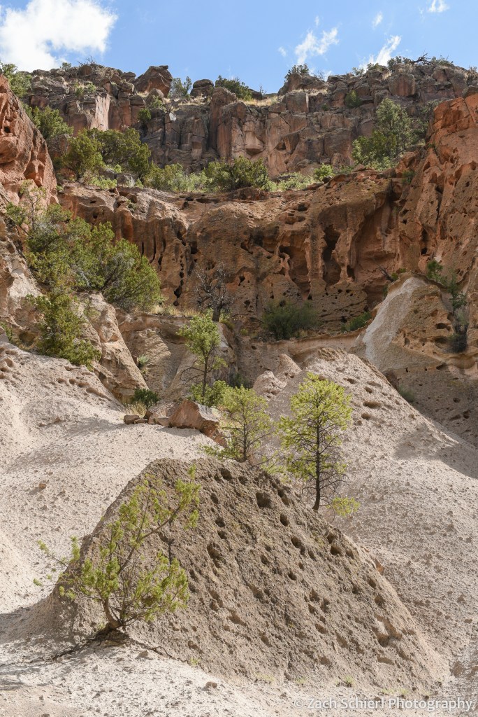 The eruption that created Valles Caldera deposited a thick layer of volcanic ash and tuff across the region known as the Bandelier Tuff. At the foot of the Jemez Mountains is Bandelier National Monument, our final stop in New Mexico, where Ancestral Puebloans carved dwellings into and out of this relatively soft and workable rock along what is now known as Frijoles Canyon: