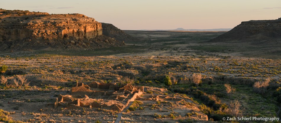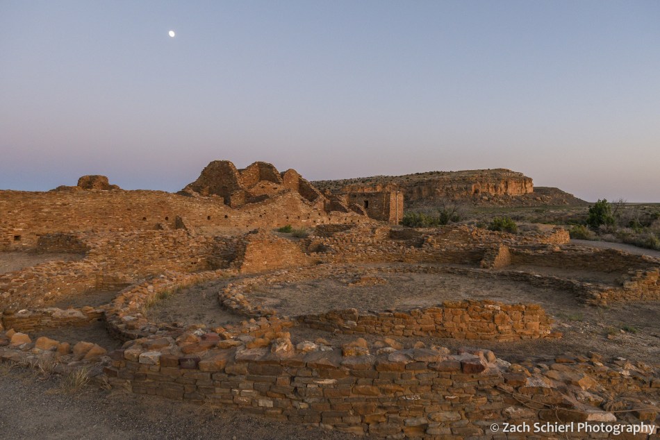 Our first stop was a place I’ve wanted to visit for a long time: Chaco Canyon. The epicenter of Ancestral Puebloan culture, this broad and shallow canyon is only accessible via many miles of dirt roads, which probably explains why we saw relatively few people once we were there! We arrived mid-afternoon and spent the night at the park campground before exploring several of the Chacoan “great houses” on self-guided trails early the following morning to beat the heat.
