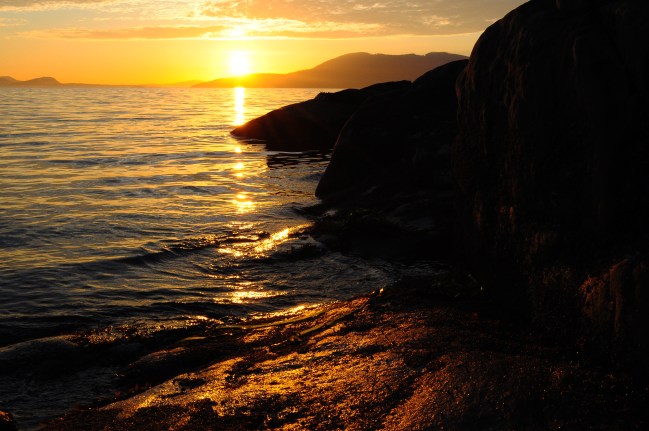 Larrabee State Park is located just a few miles south of Bellingham, WA and holds the honor of having been the first state park in Washington, being designated as such shortly after a local family donated the land to the state in 1915. Several short trails lead from Highway 11 down to beaches that are positioned perfectly for spectacular sunsets…when the sun is visible that is. These photos were taken in late summer, before the gray and gloom set in for the winter. I guess you could say I’m posting them now in an attempt to relive the sunnier days of yore. Or because the photos on the park webpage leave a lot to be desired…