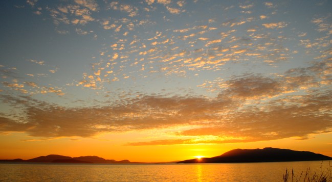 Sunset over Orcas Island (left) and Lummi Island (right)