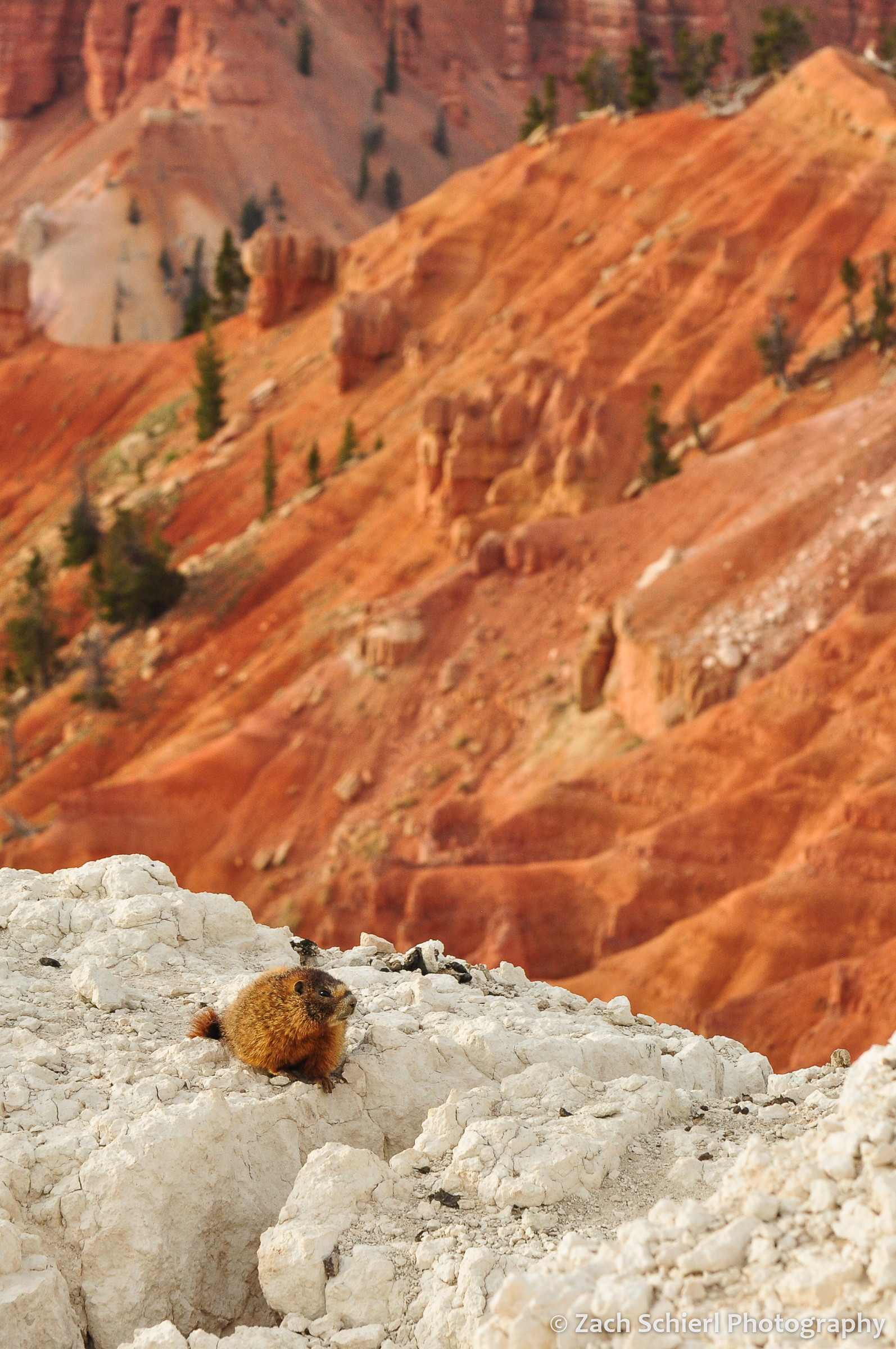 Sunset and marmot at Cedar Breaks National Monument, Utah