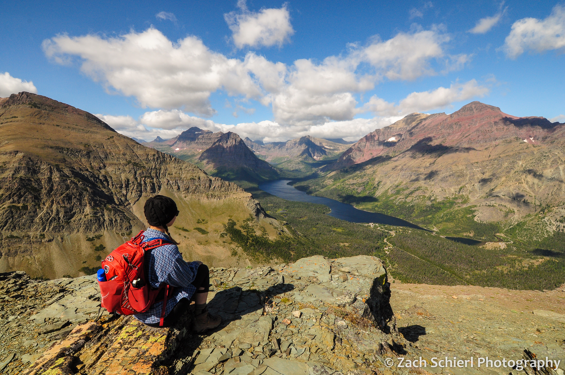 Hiking through the redbeds of the Grinnell Formation on the way to Grinnell Glacier.