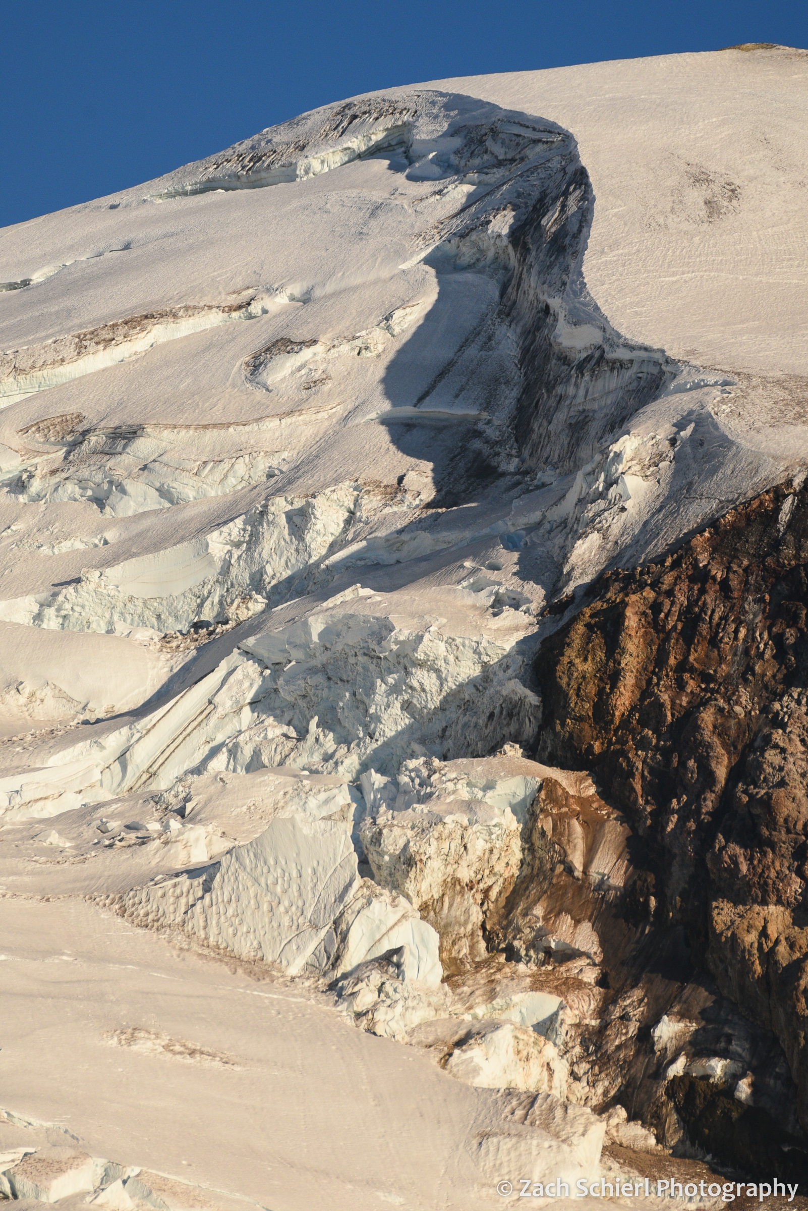 Massive blocks of ice in the Adams Glacier near the summit of Mt. Adams