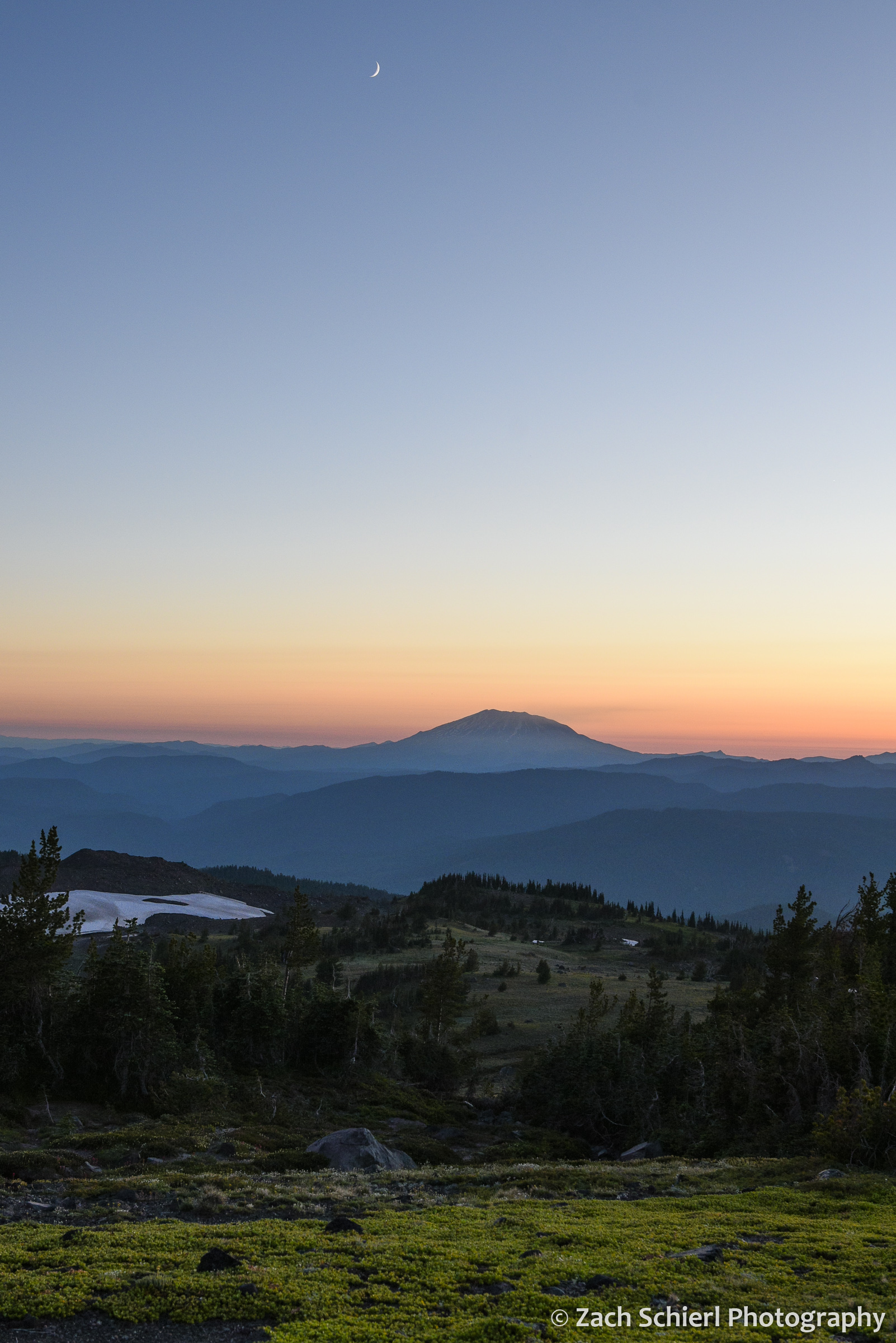 An hour later, the same vantage point provided a glimpse of the crescent moon over Mt. St. Helens