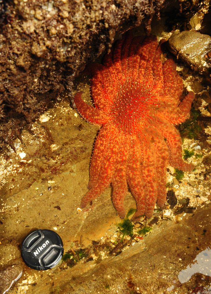 A deceased (?) lion’s mane jellyfish (Cyanea capillata) washed up on the beach, one of many, many such jellies we found on our trip.