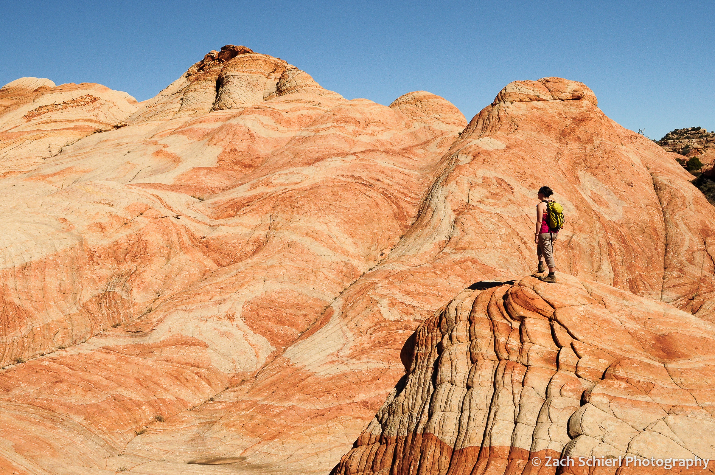 Looking south across swales and ridges of Navajo Sandstone from the Petrified Dunes trail in Snow Canyon State Park, Utah