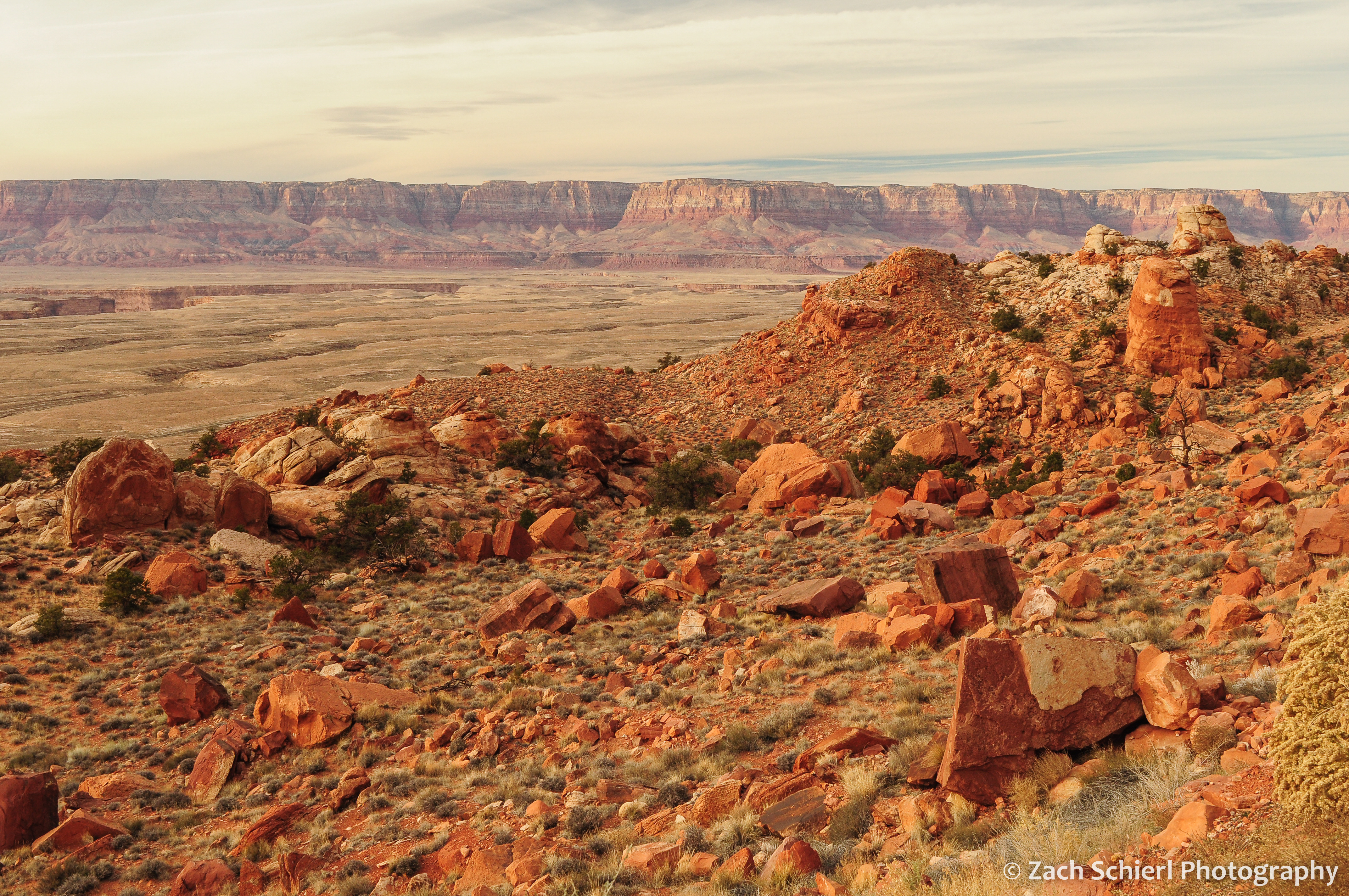 Joshua trees and desert landscape, Virgin River Gorge, Arizona
