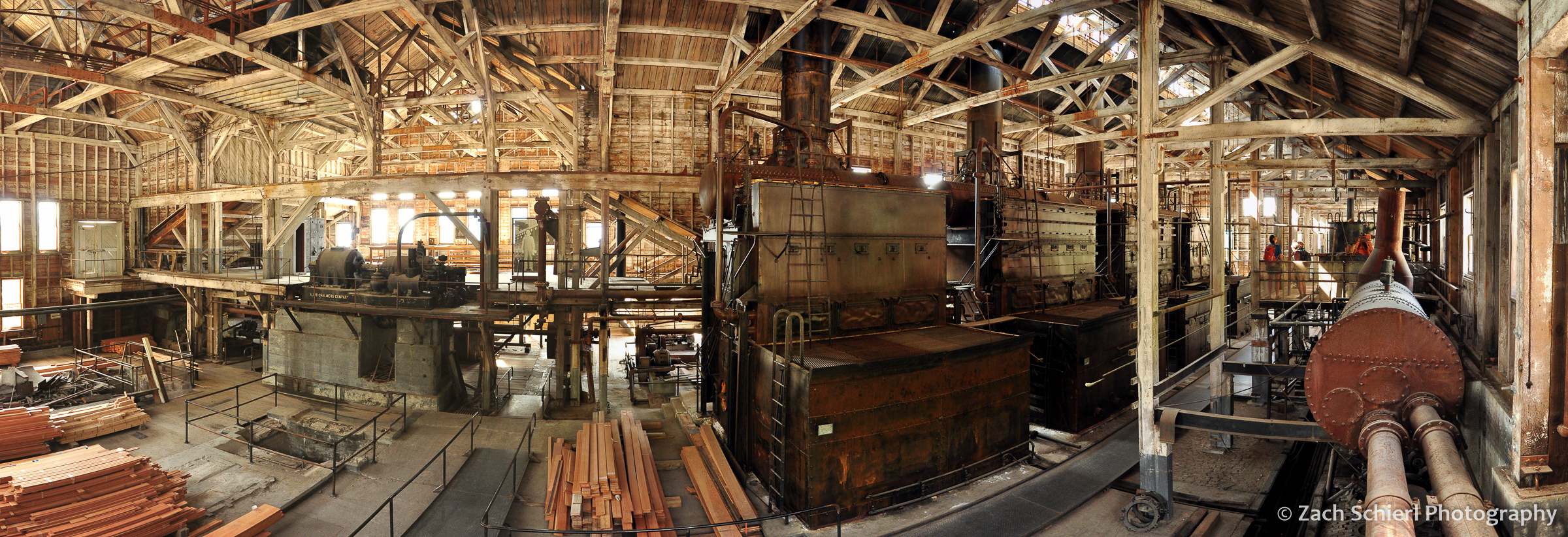 The interior of the Kennecott Power Plant, with massive boilers used to produce electricity and steam heat for the mines and town residents.