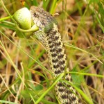 Just to be clear, that’s a garter snake (likely either Thamnophis elegans or Thamnophis marcianus…any snake people out there?) going NOM NOM NOM on a smooth green snake (Opheodrys vernalis). Now that’s not something you see every day.