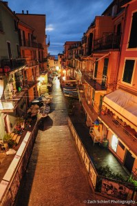 The streets of Manarola at night. The local fishermen had all removed their boats from the harbor for safe storage on the streets because of the storm and high surf.